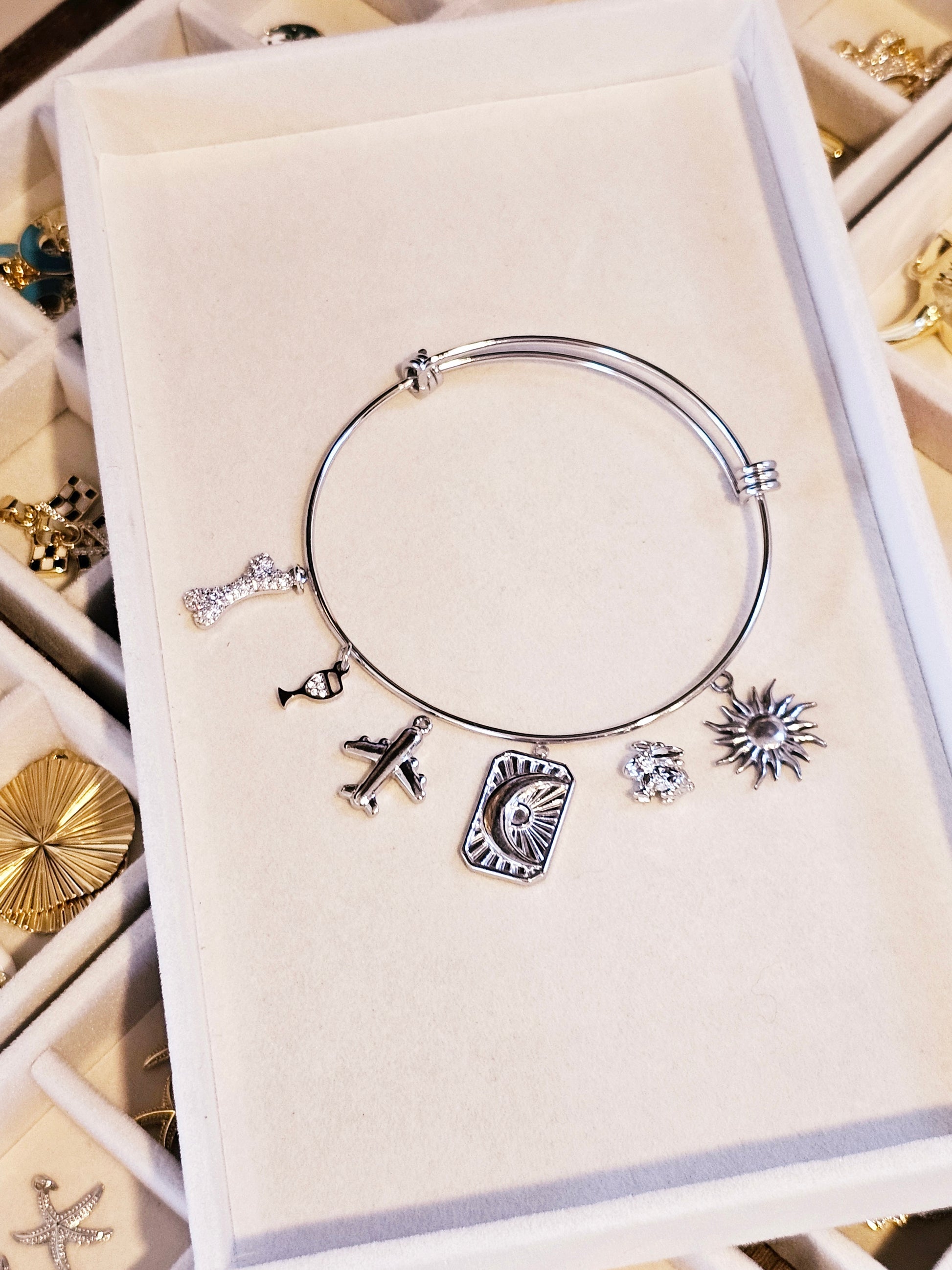 This Stainless Steel Expandable Bangle Bracelet is a versatile and contemporary accessory option. The expandable design ensures an ideal fit for a range of wrist sizes, while its minimal design is ideal for pairing with a variety of wardrobe looks. Customize the look with favorite charms, making it an excellent choice for adding a personal touch to your ensembles. Perfect for casual or formal attire, this bracelet is an ideal choice for everyday wear.