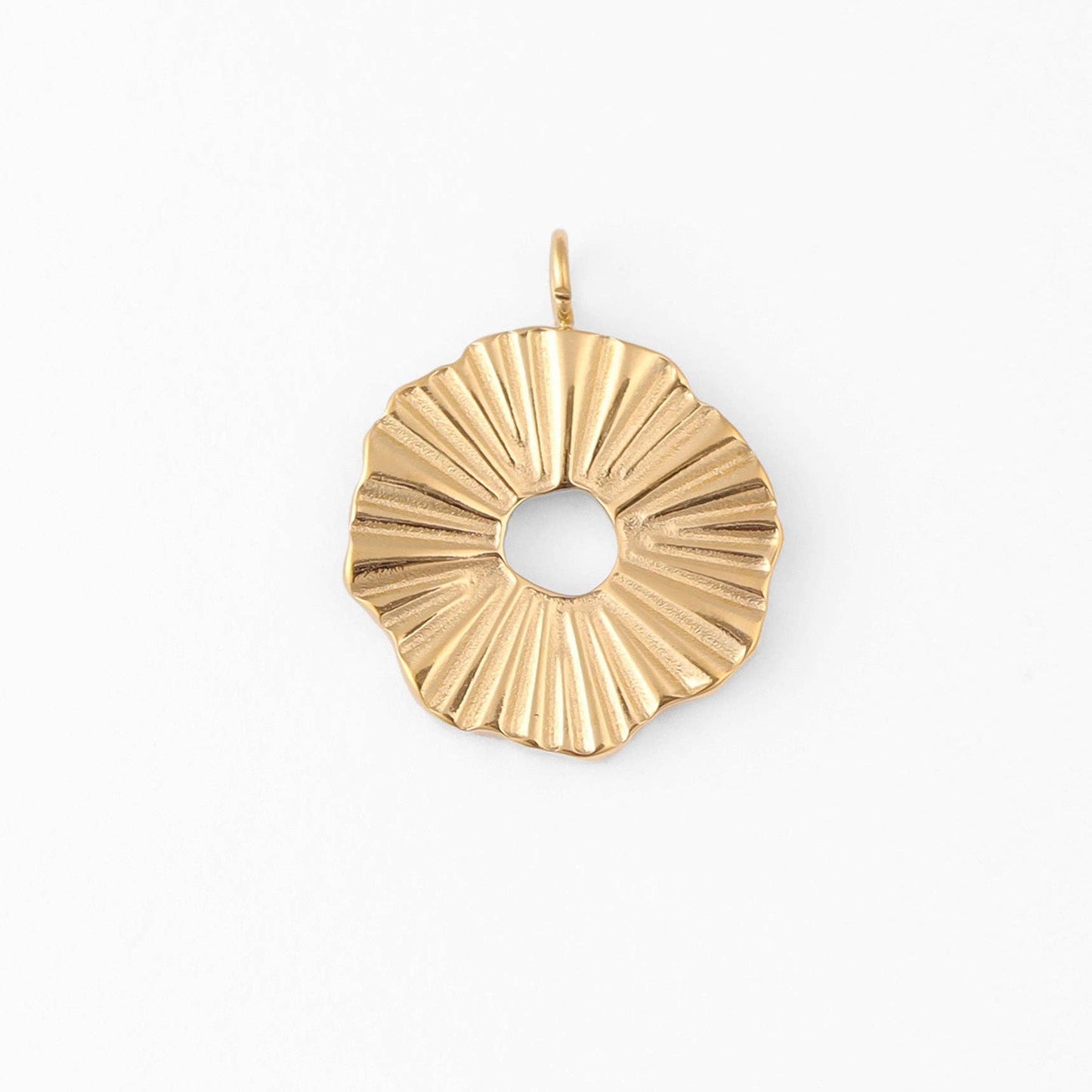 18K Gold PVD Stainless Steel Textured Sunburst Circle Charm