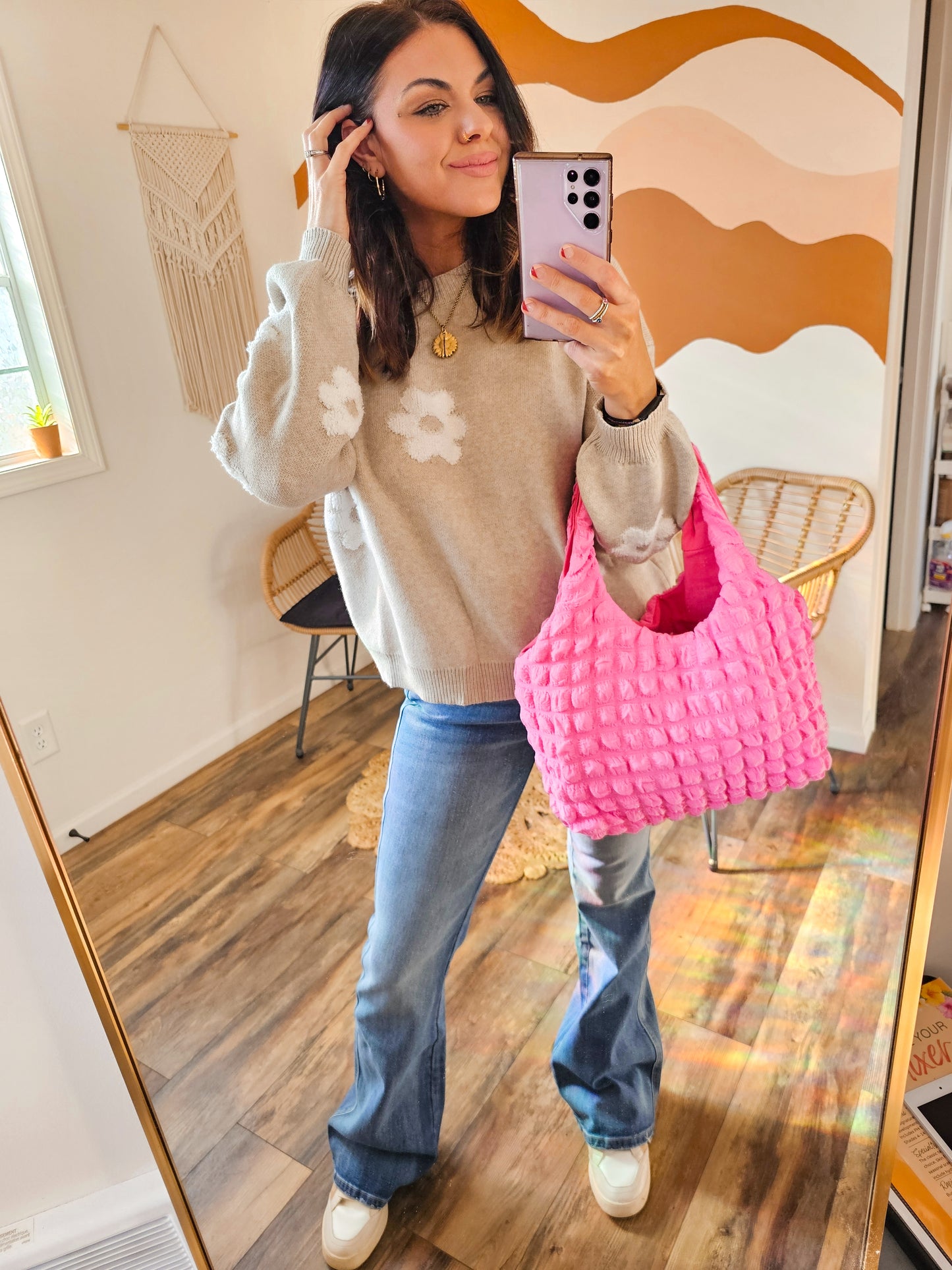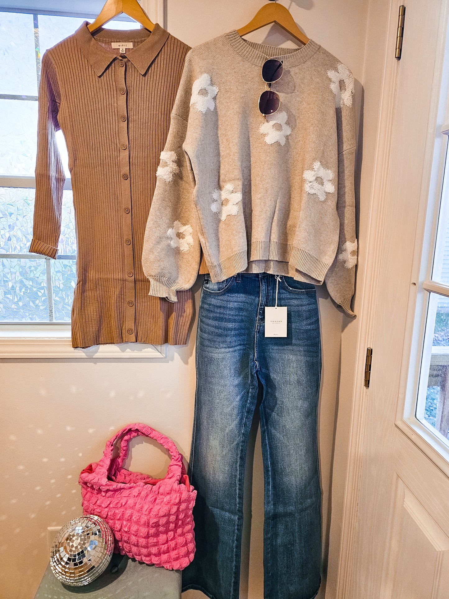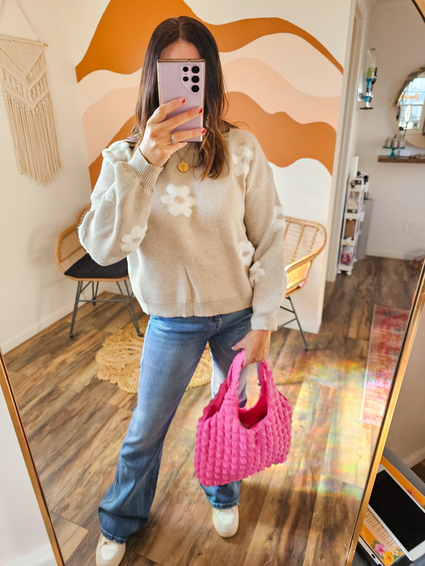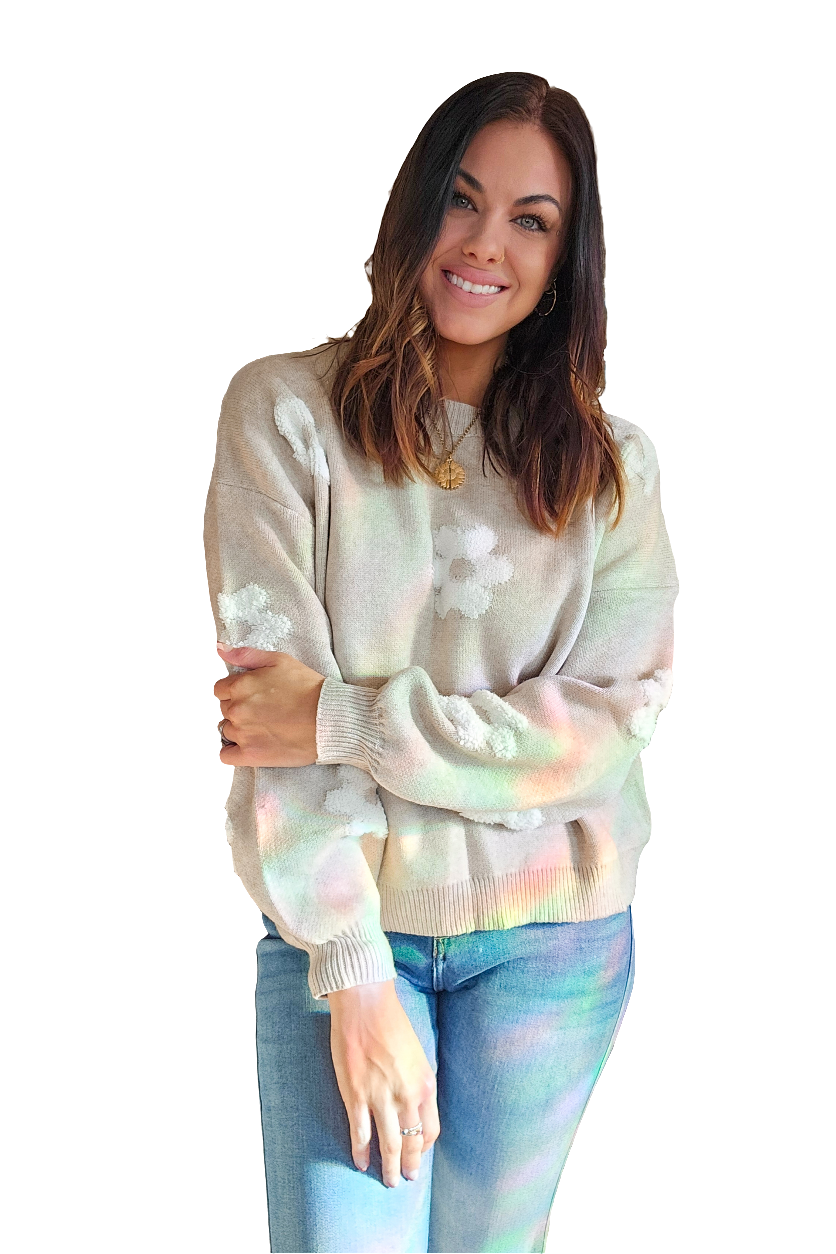 Floral Drop Shoulder Cropped Sweater is a stylish and contemporary knitwear piece that features a floral design, drop shoulders, and a cropped length. The floral pattern adds a feminine and vibrant touch to the sweater, perfect for adding a pop of color and interest to your outfit. The drop shoulders create a relaxed and slouchy fit, giving off a casual and laid-back vibe. The cropped length adds a modern and trendy element to the sweater, making it easy to style with high-waisted bottoms for a chic and flattering look.