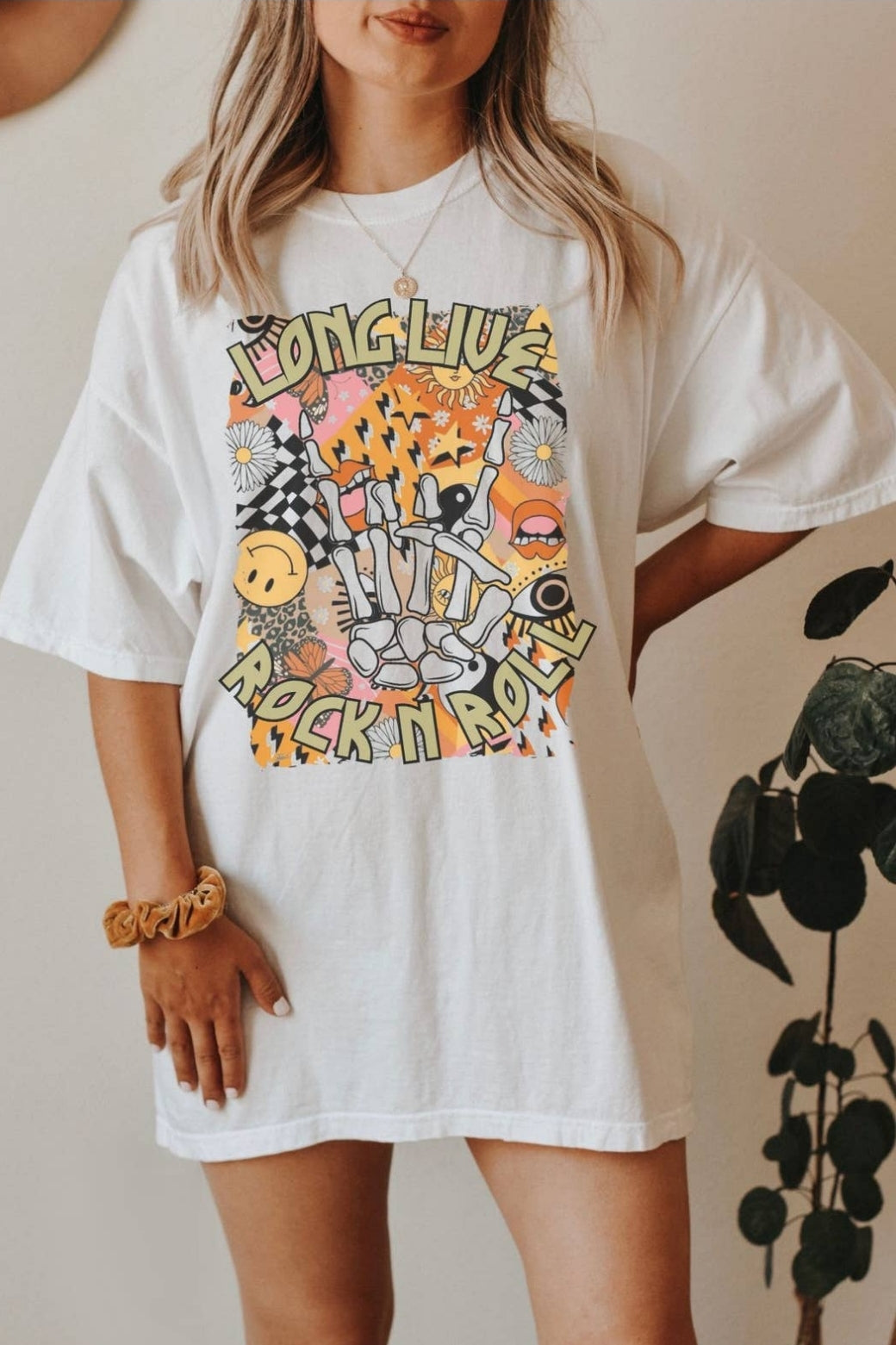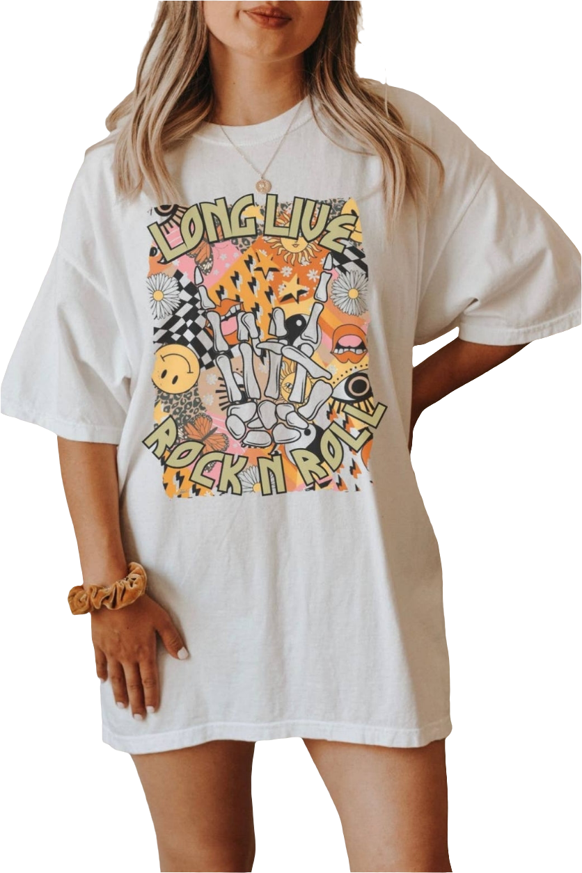 Long Live Rock n Roll Graphic Tee is printed on the popular Comfort Colors Relaxed Unisex style T-Shirt. Lightweight and super soft, this shirt is a comfortable fit for effortless style.