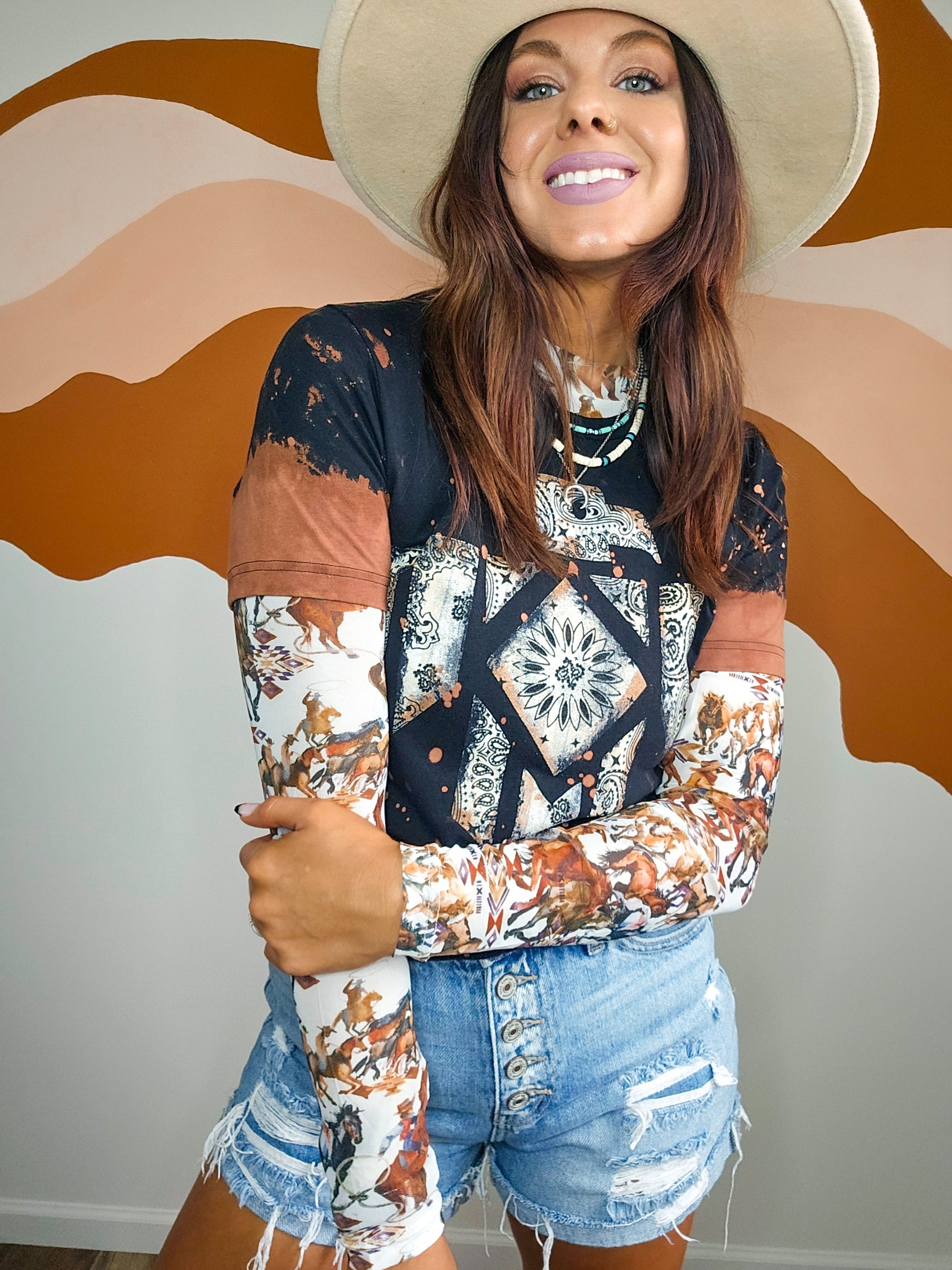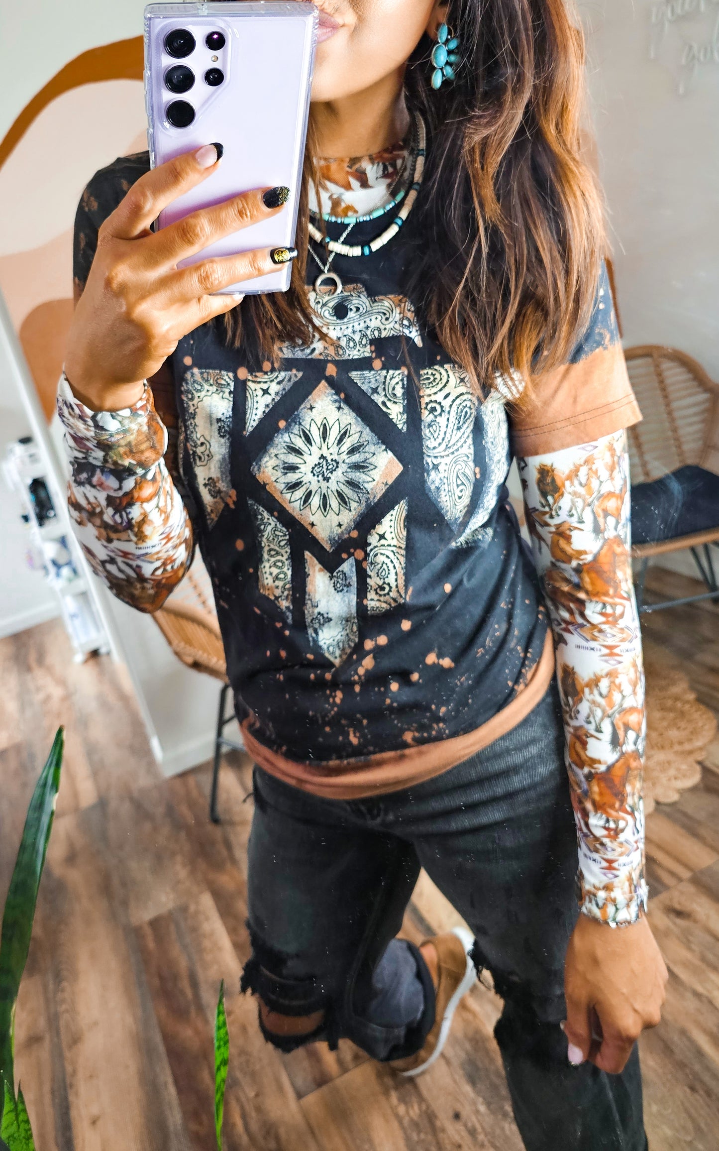 Studio|Paisley Western Thunderbird Bleached Graphic Tee